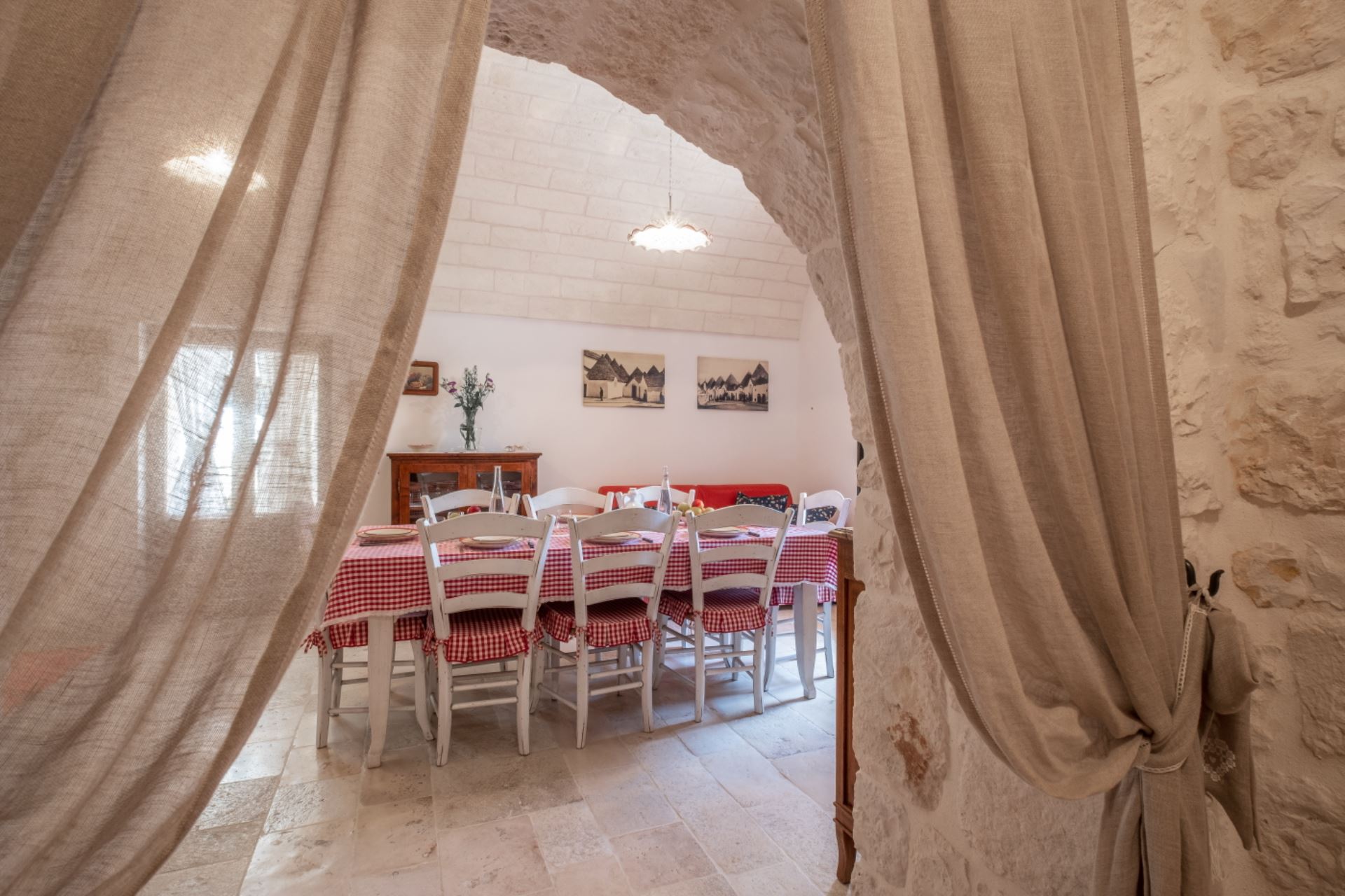 Ved renoveringen er de arkitektoniske detaljer bevaret i de klassiske trulli-huse, hvor de specielle tage, det gamle ildsted, de oprindelige stengulve og rå stenvægge bevaret, som, udover at skabe et oprindeligt udtryk, også fungerer fint til at skabe et behageligt klima indendørs. Indretningen er holdt enkelt i den lokale stil.