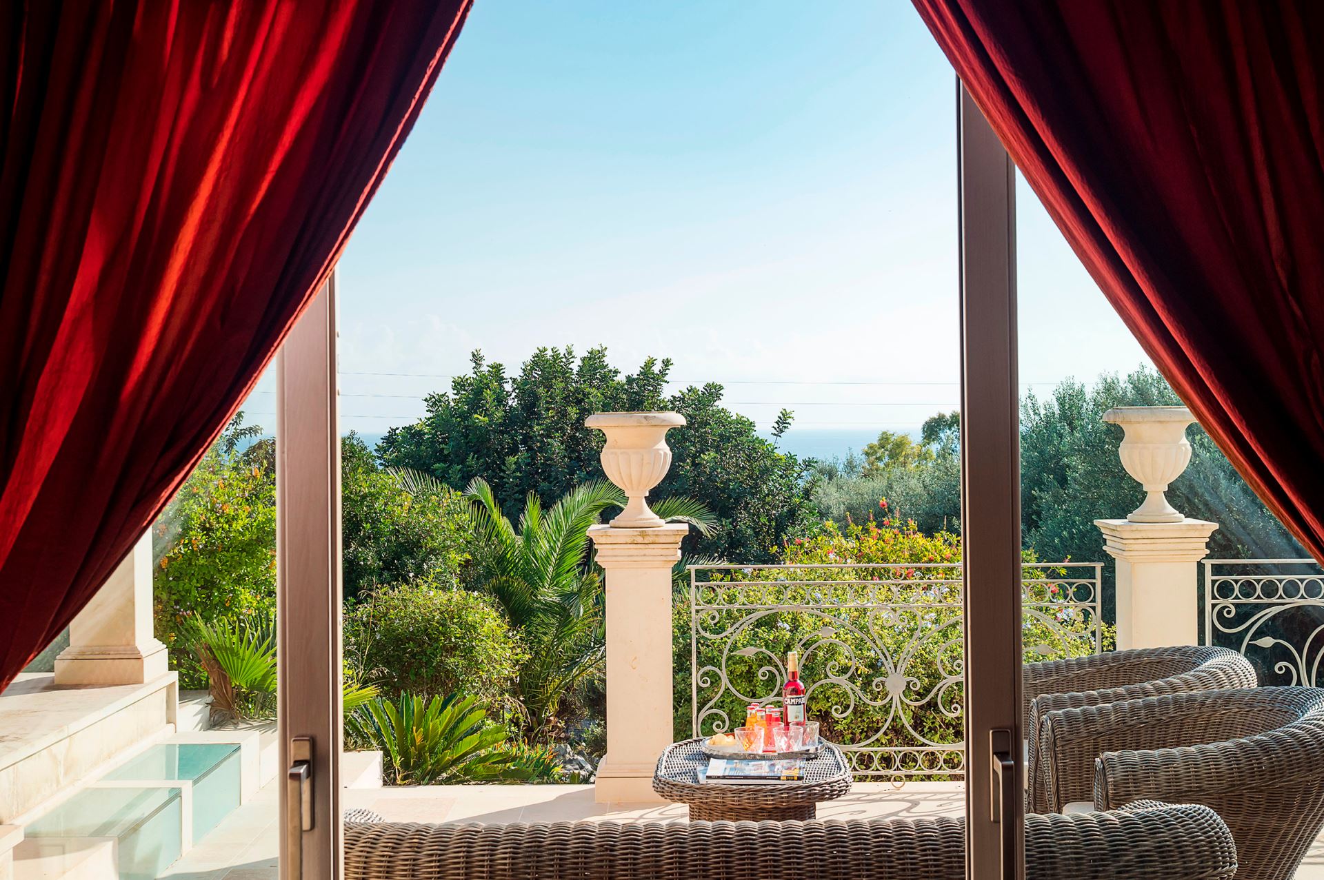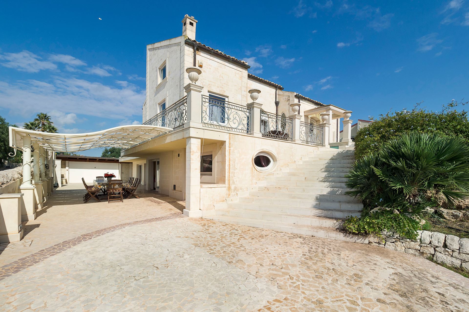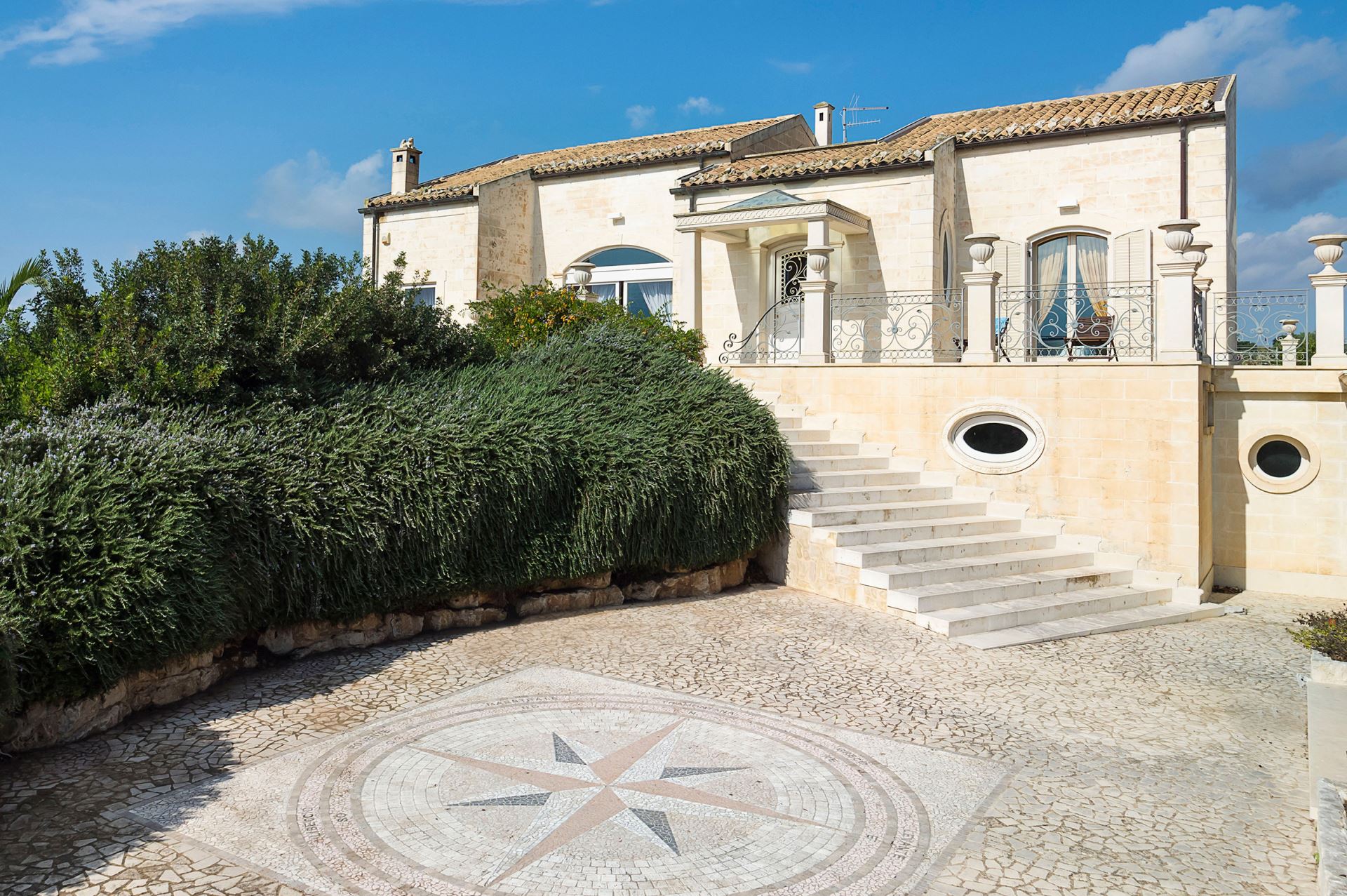 Villaen er omgivet af en velholdt have indrammet af de karakteristiske sicilianske stenmure og har store terrasser, hvorfra man har en fantastisk udsigt over det omkringliggende landskab og havet.