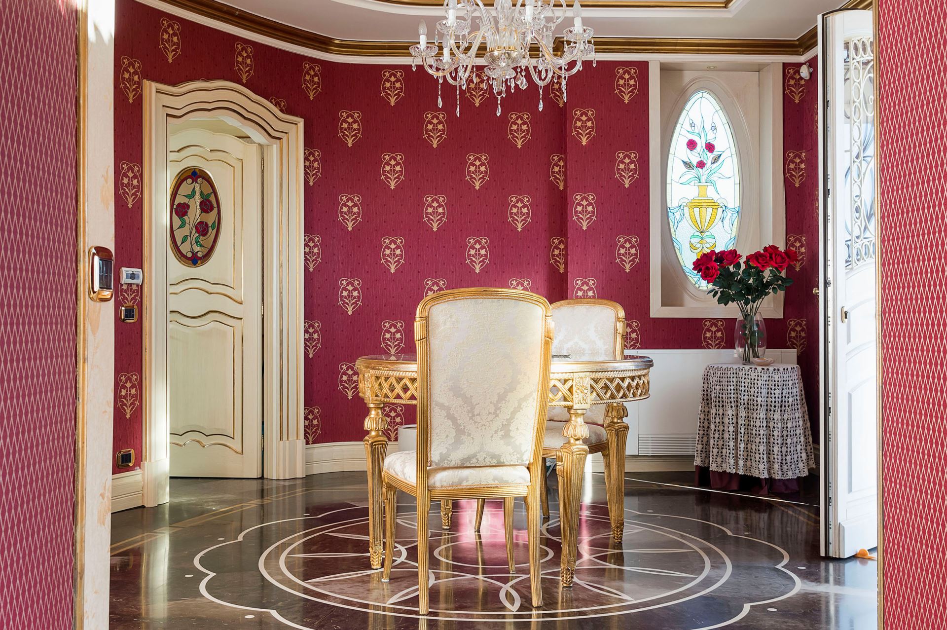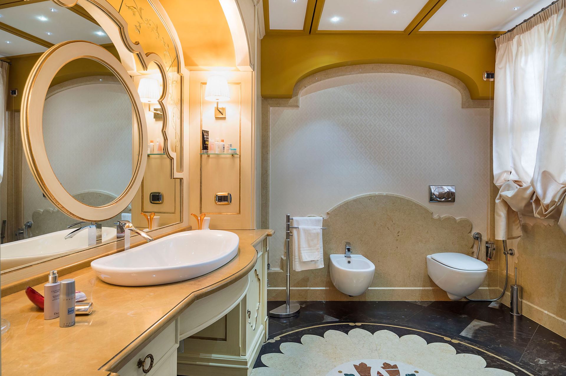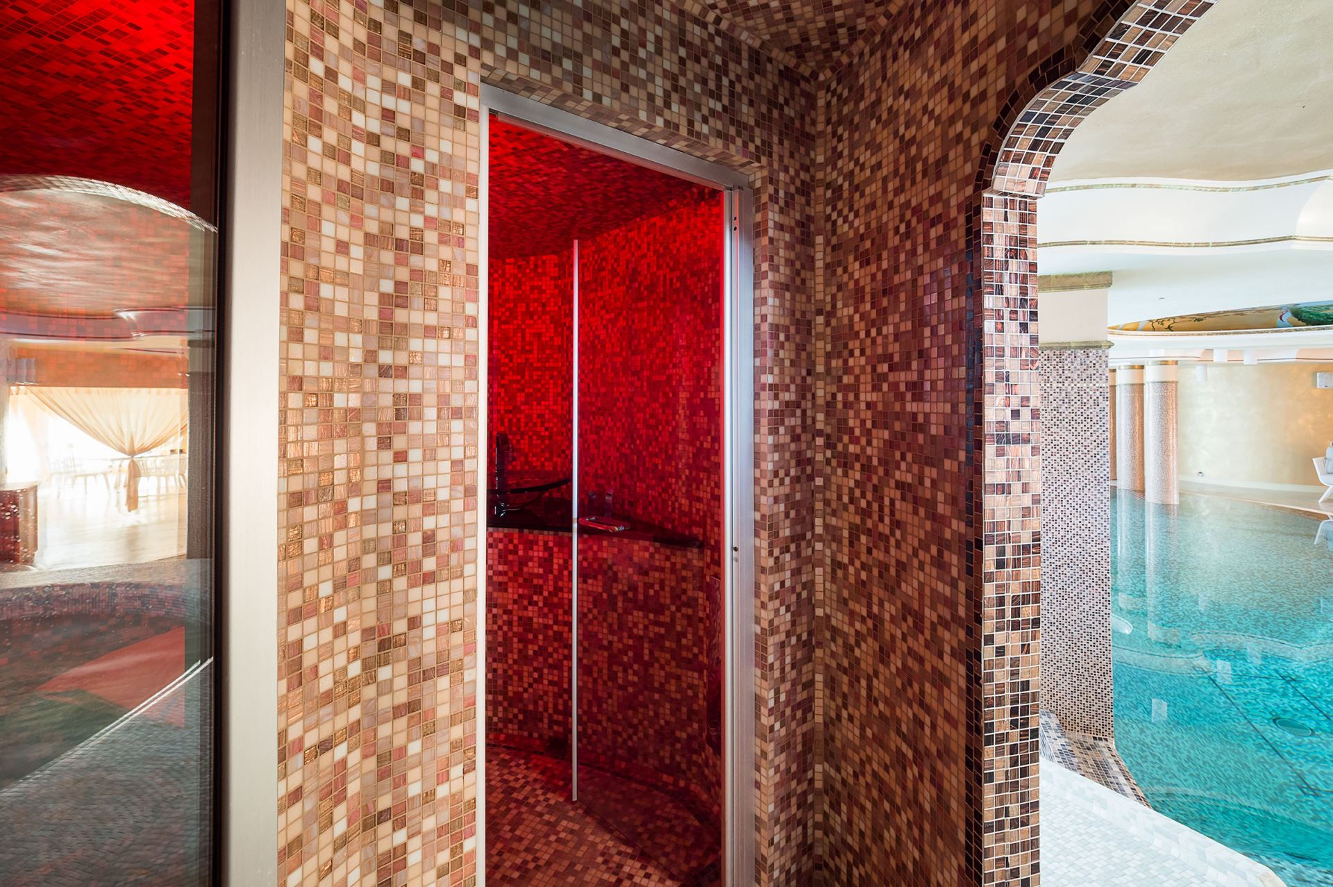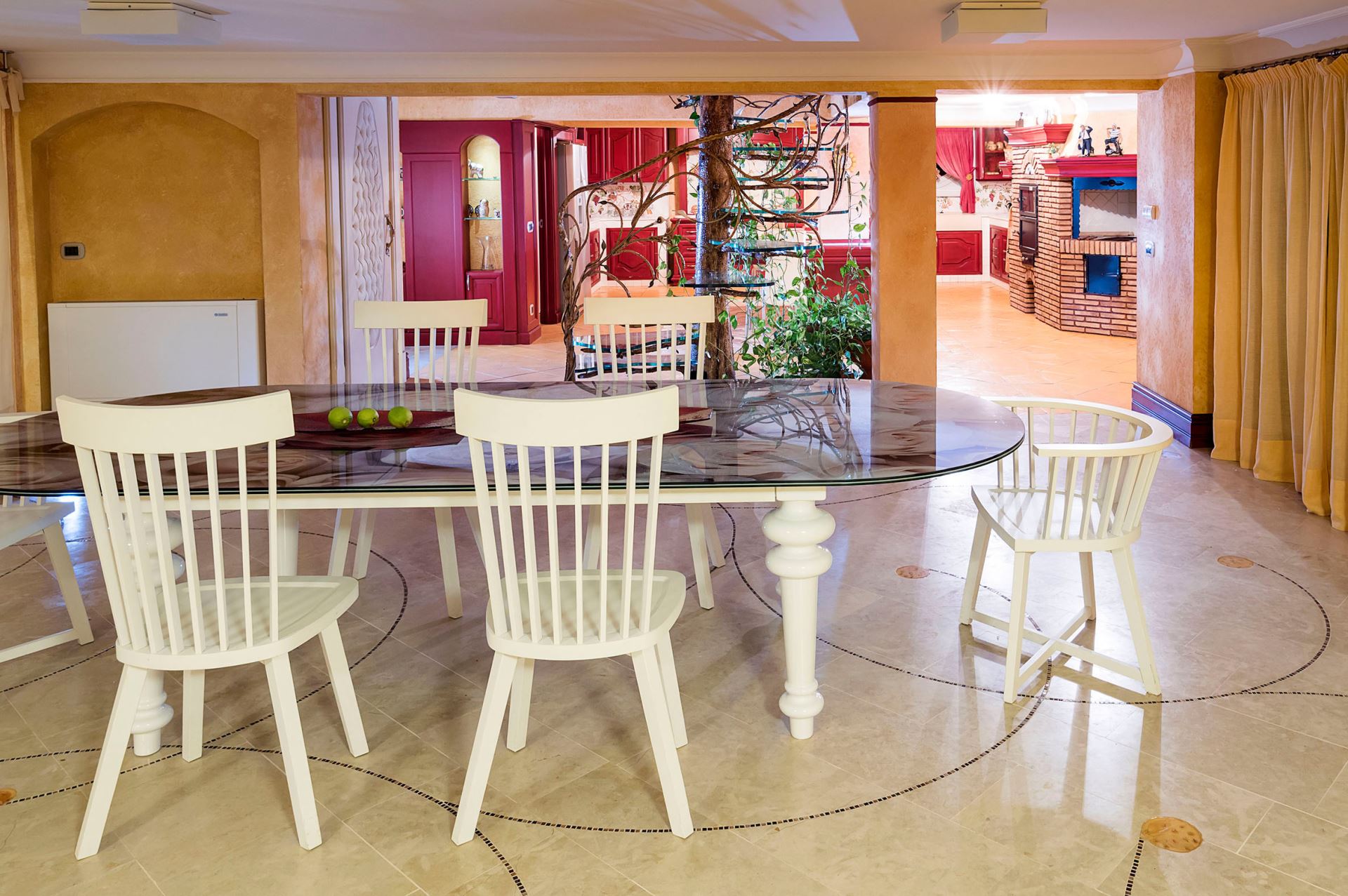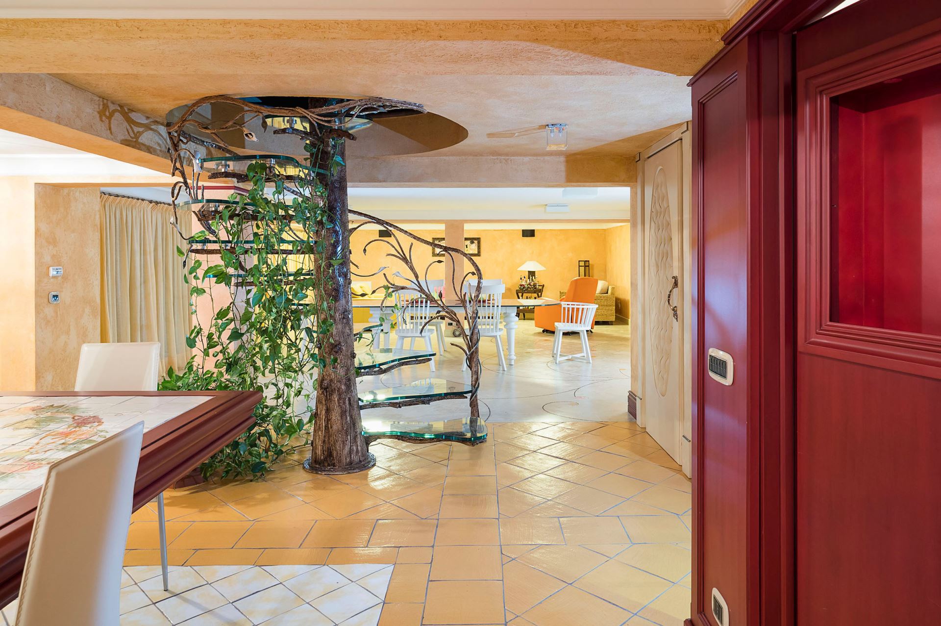I stueetagen er der en stor stue med spisestue, et veludstyret indbygget køkken og, ikke mindst, det eksklusive wellness-område med tyrkisk  hammam-bad, jacuzzi, to badeværelser med bruser og den opvarmede indendørs pool.