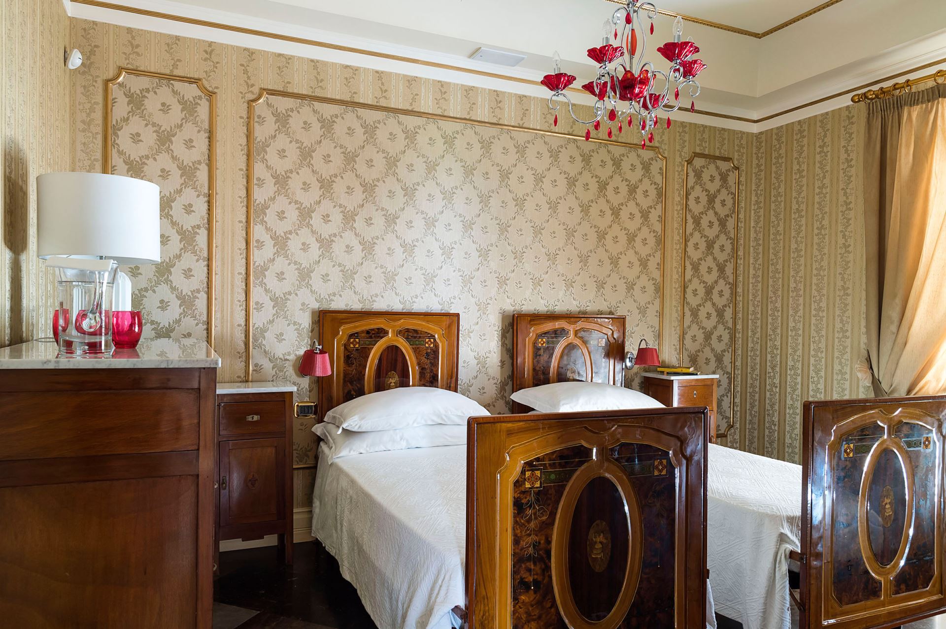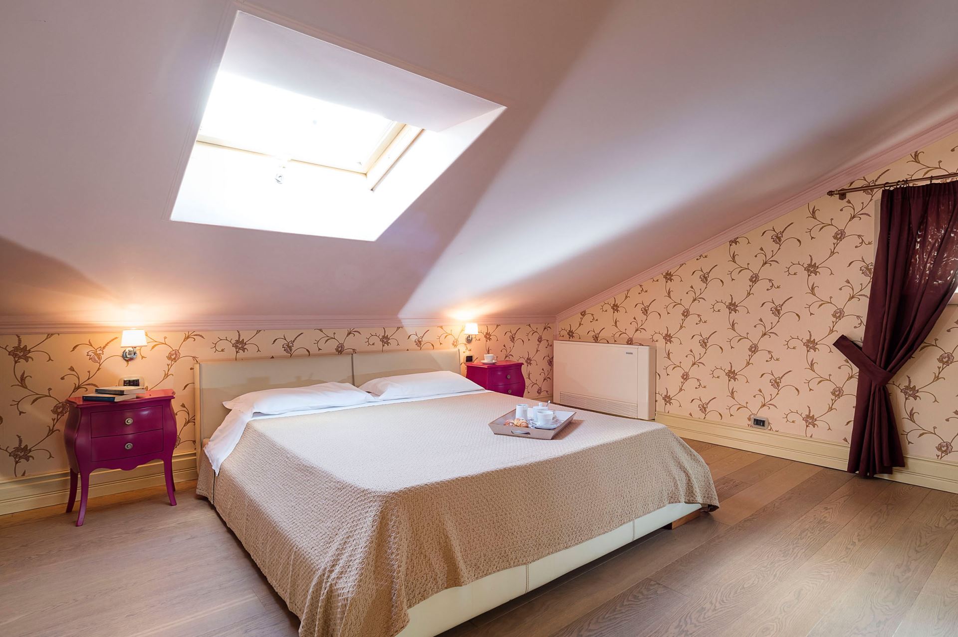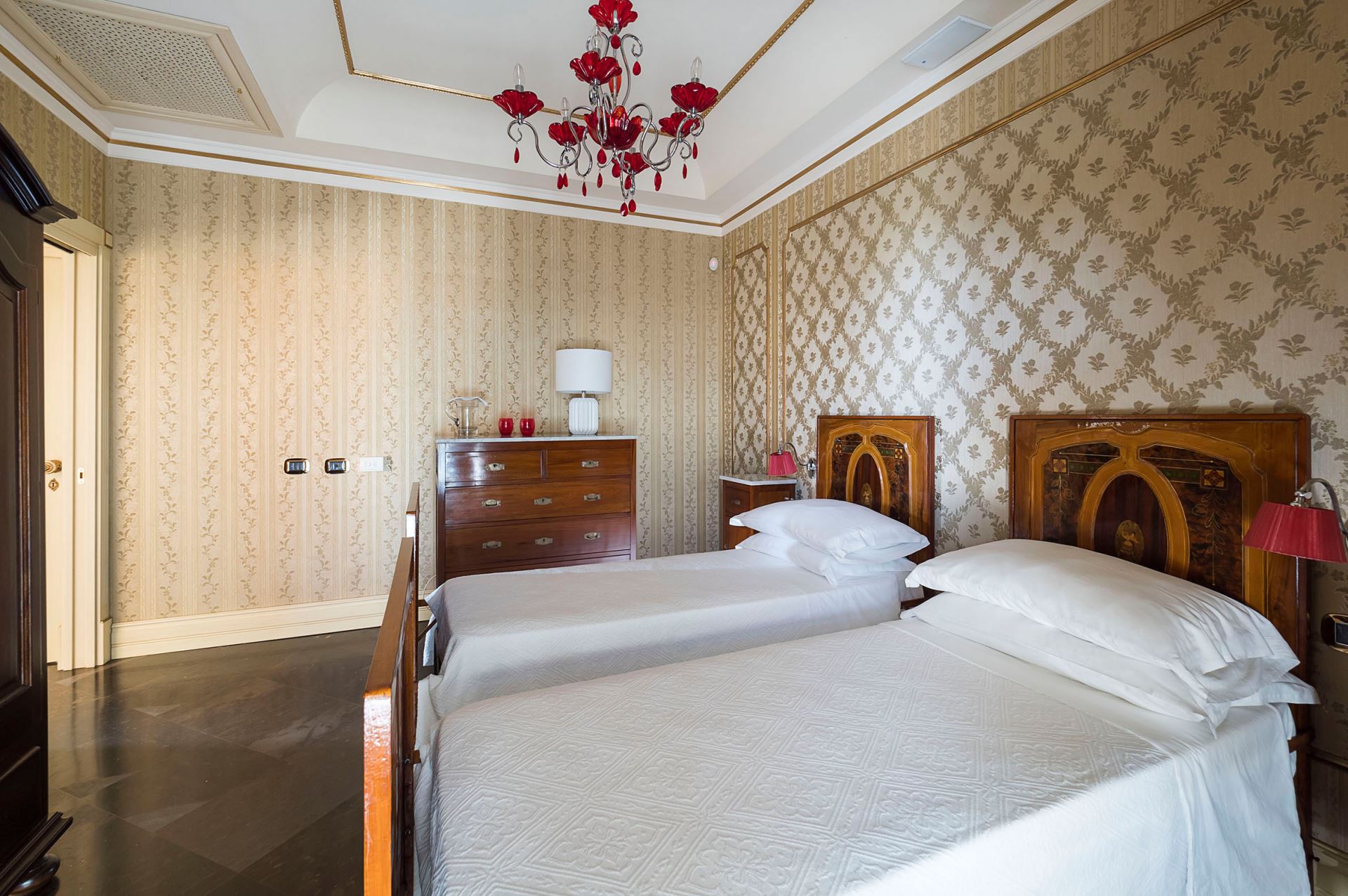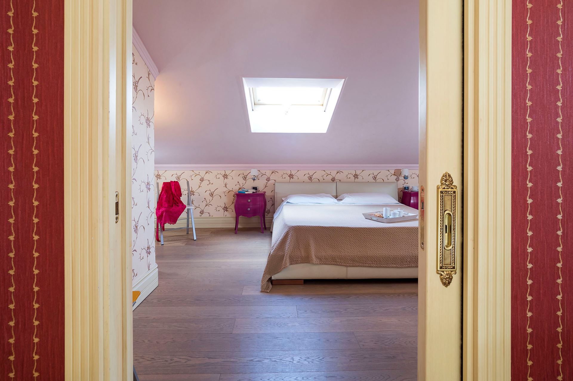 På første sal, som man kommer til via en imponerende ekstern dobbelt rampetrappe, har man en elegant stue med pejs og to soveværelser og et badeværelse. På anden sal (mandsard) ligger yderligere to soveværelser og et badeværelse.
