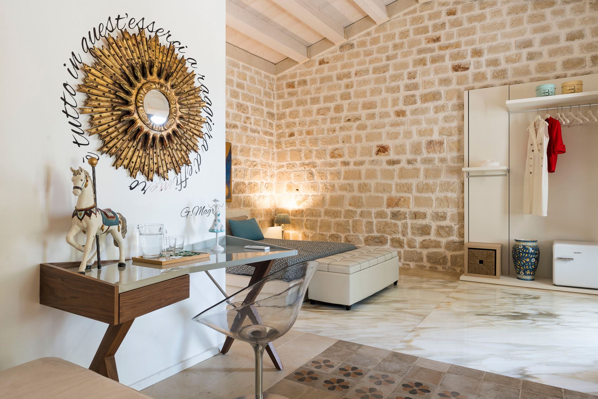 Det gamle landhus er sat i stand med en flot balance mellem historie og tradition, hvor det moderne på charmerede vis er blandet med de oprindelige traditionelle elementer. Indretningen er smagfuld med mange fine detaljer, som fremhæver den oprindelige arkitektur på elegant vis. Villa Luna råder desuden over et eksklusivt wellness-område med sauna og jacuzzi.