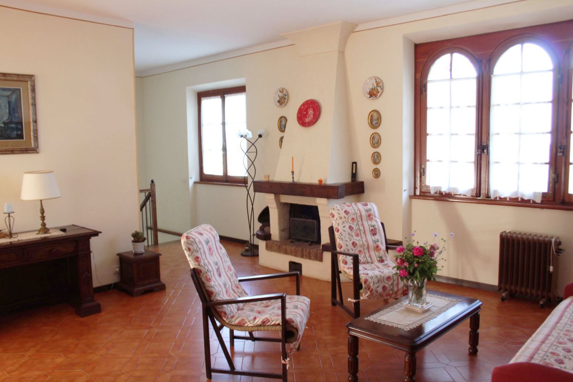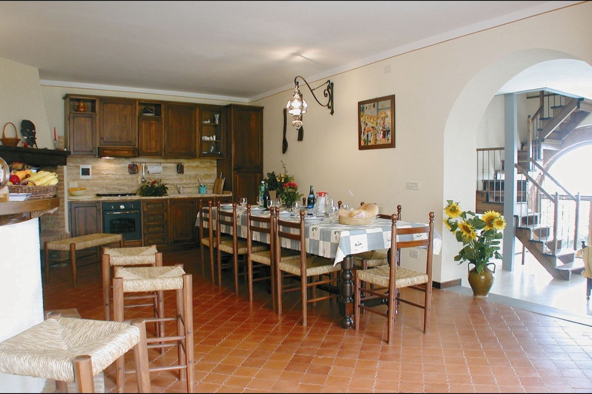Klassisk toscansk villa til 8 + 2 personer med privat pool i udkanten af lille landsby med restaurant (900 m) og middelalderbyen Monte San Savino med supermarked, restauranter og barer 10 km væk i området mellem Siena og Arezzo i det centrale Toscana.