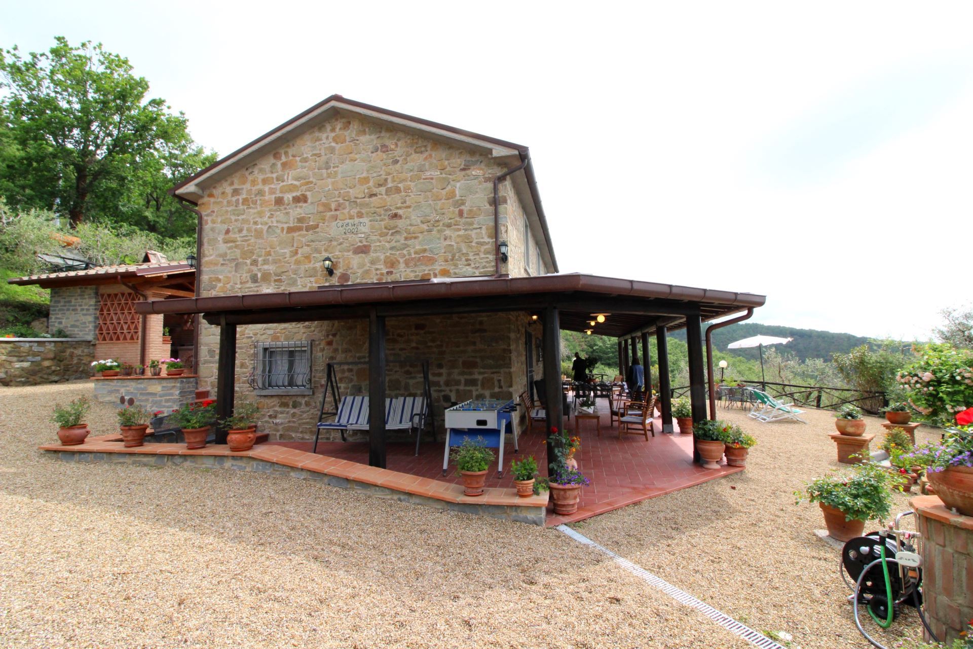 Villa Ca' di Vestro er en klassisk toscansk villa, bygget i sten, som ligger roligt i naturskønne omgivelser helt omgivet af olivenlunde og skov og med en vidstrakt udsigt over landskabet i Arezzo-provinsen. Trods den landlige beliggenhed kan man hurtigt bevæge sig rundt i området takket være dalens gode vejnet, som forbinder byerne Arezzo (19 km) og Firenze (55 km), ligesom den nærmeste by med supermarked og caféer og restauranter, San Giustino Valdarno, kun ligger 2,5 km fra villaen. Ca' di Vestro er en del af en stor landejendom og er omkranset af 4 hektar olivenlunde, hvor ejerne har specialiseret sig i økologisk produktion af ekstra jomfru olivenolie af høj kvalitet, som man kan smage (på forespørgsel).