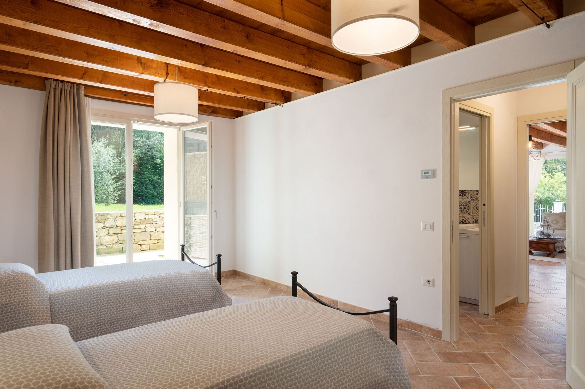 1 værelse med to enkeltsenge + 1 tredje seng med adgang til det fri