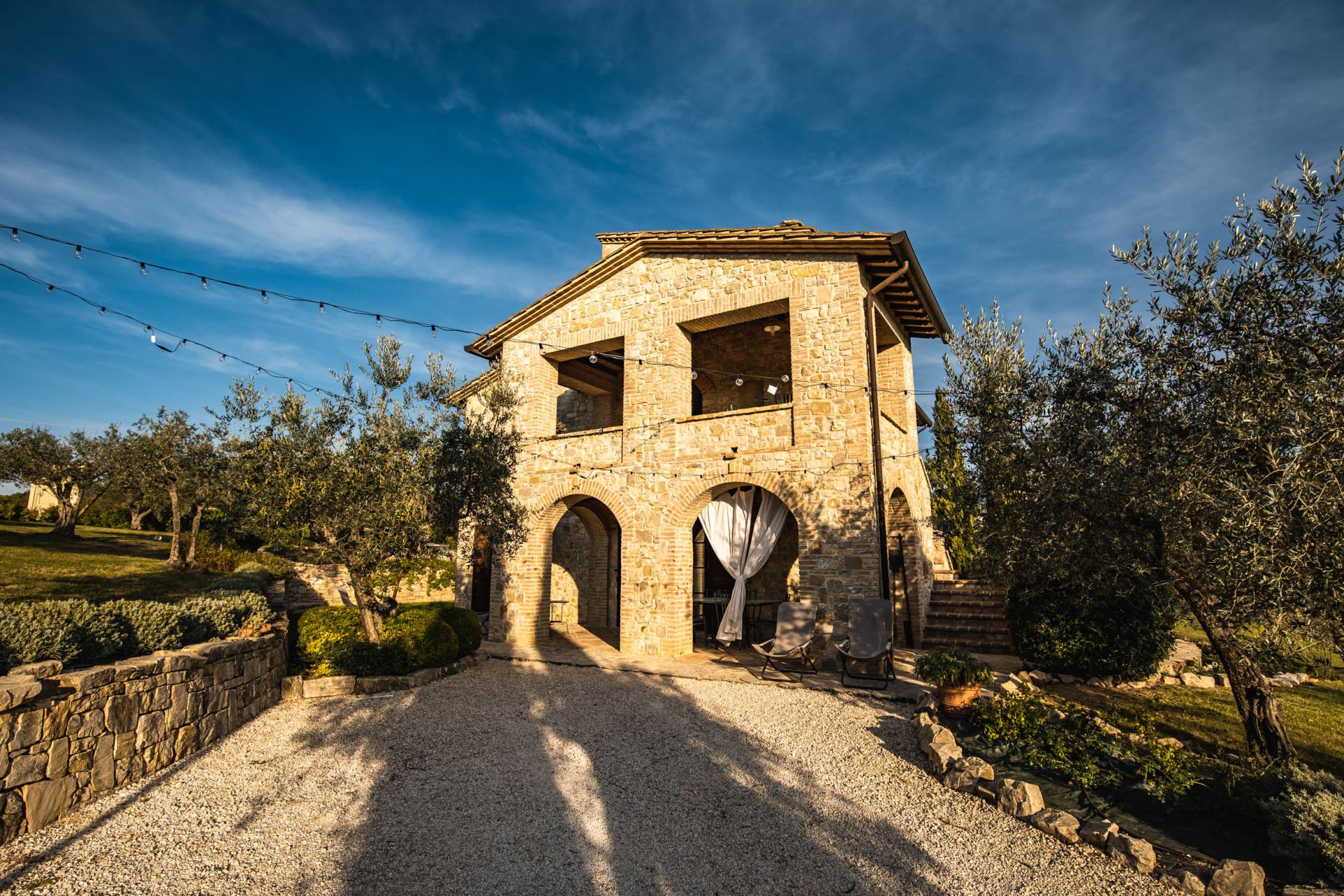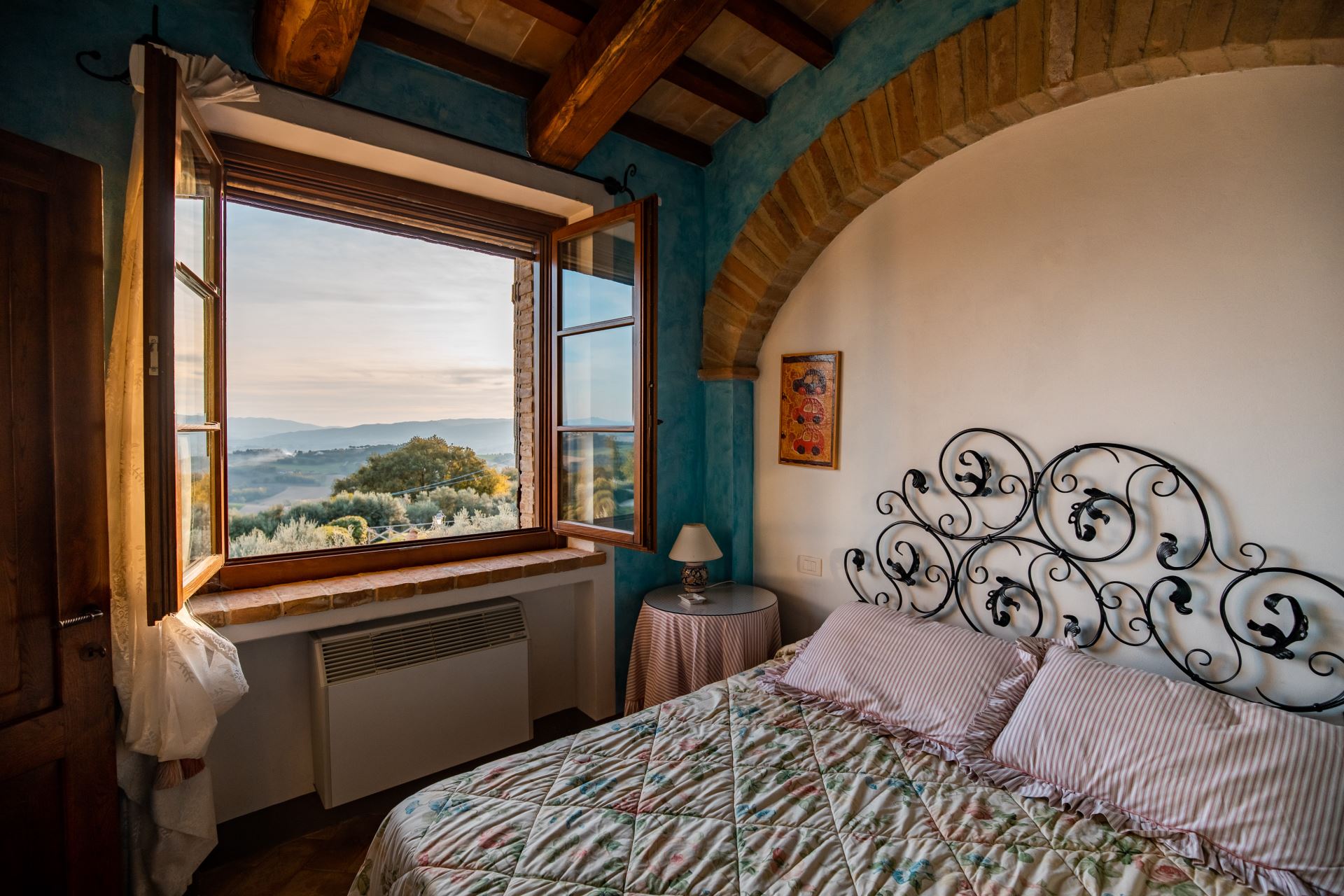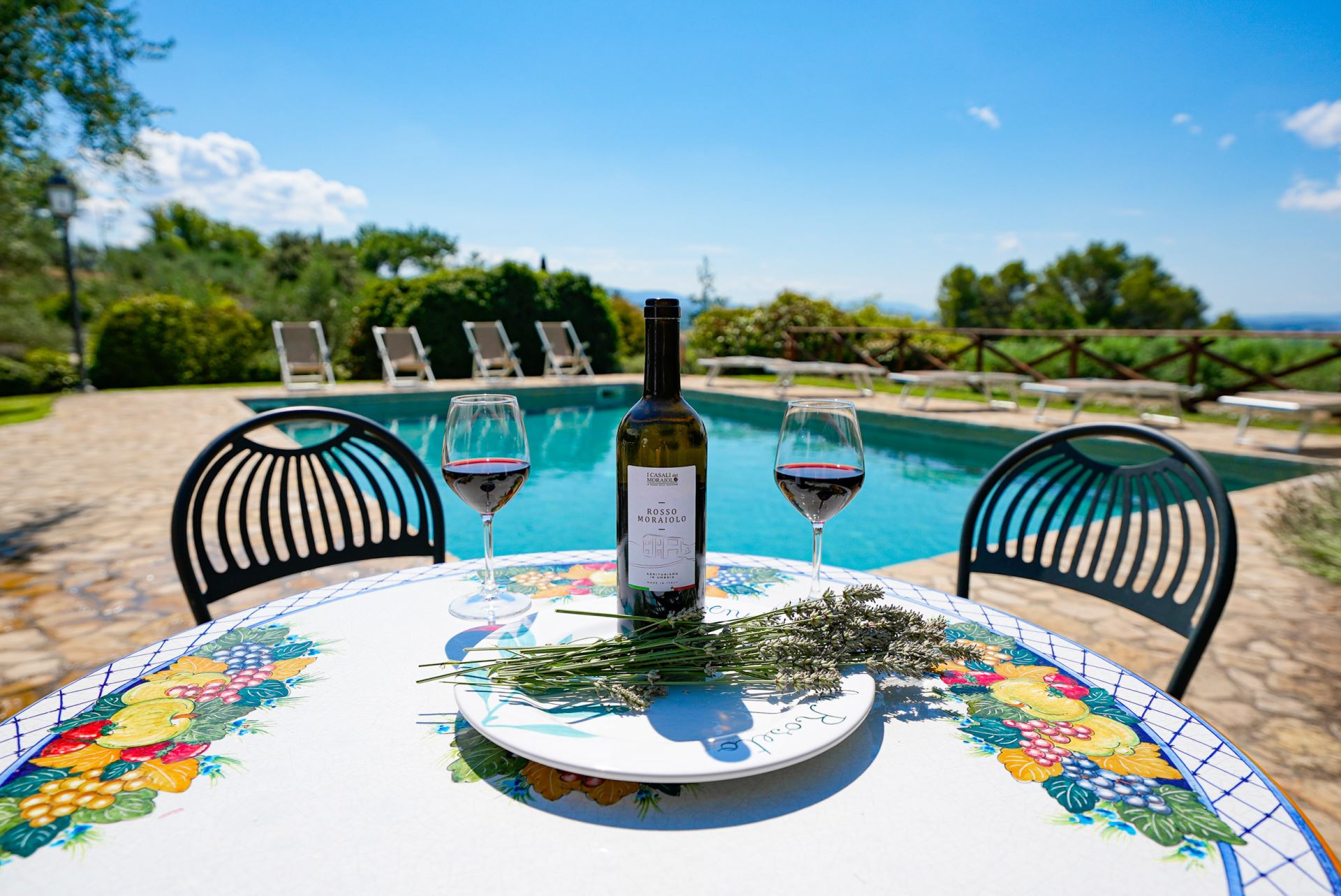 Villa Rose ligger højt med udsigt over det omgivende umbriske landskab med oliventræer, skov, marker og små landsbyer på bakketoppene. Huset er detaljeret renoveret og istandsat med stor respekt for den lokale tradition og indretningen er meget gennemført i en klassisk italiensk stil med alle moderne bekvemmeligheder såsom aircondition, internet og opvaskemaskine.
