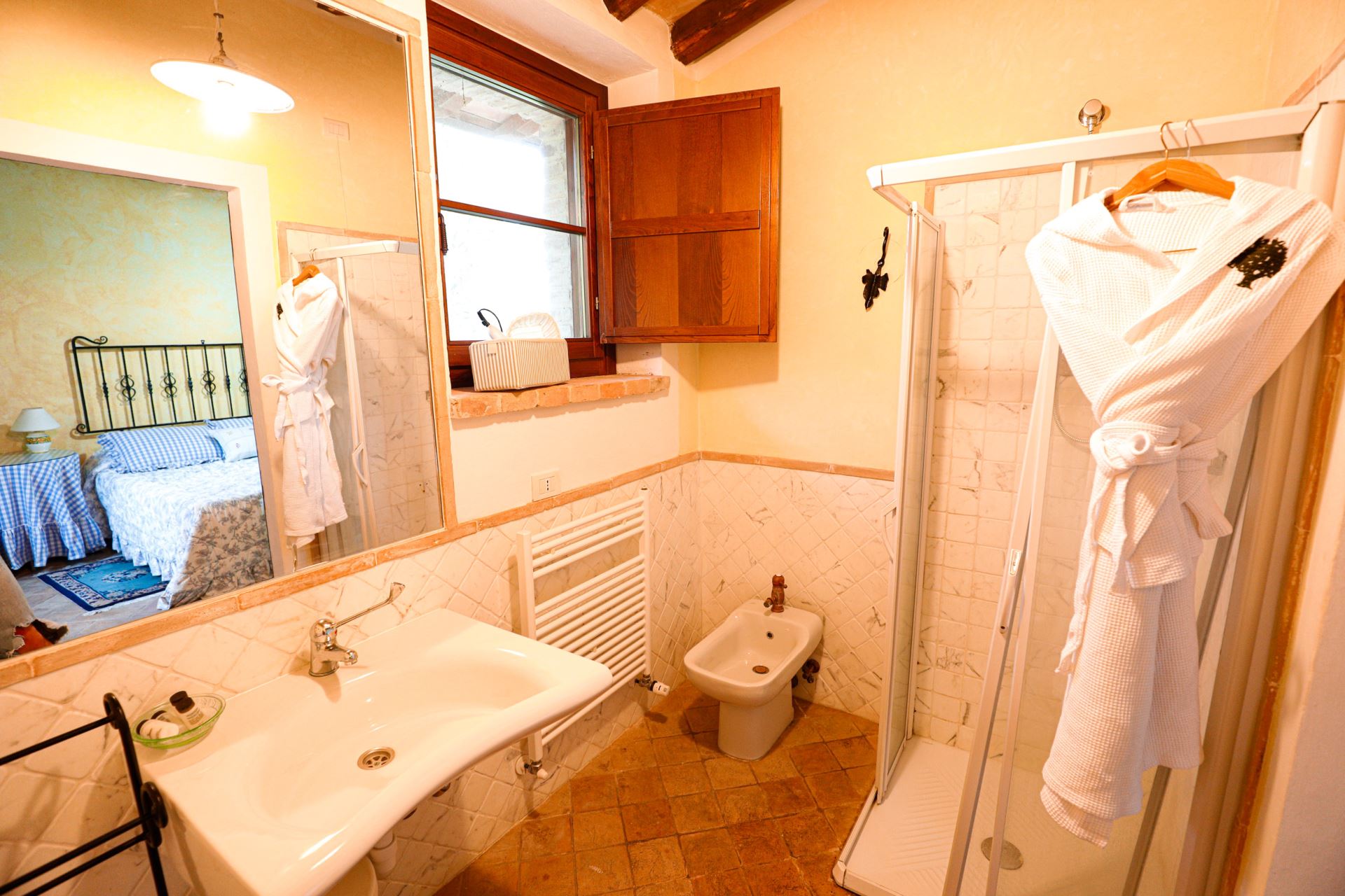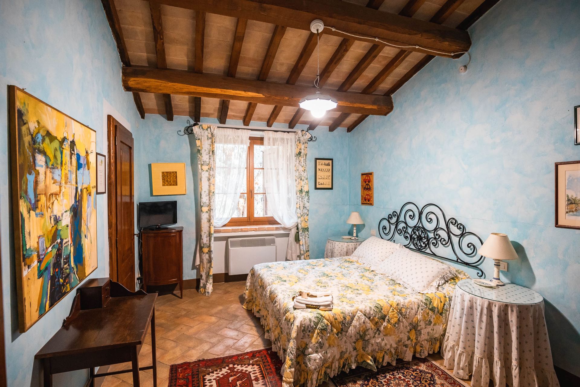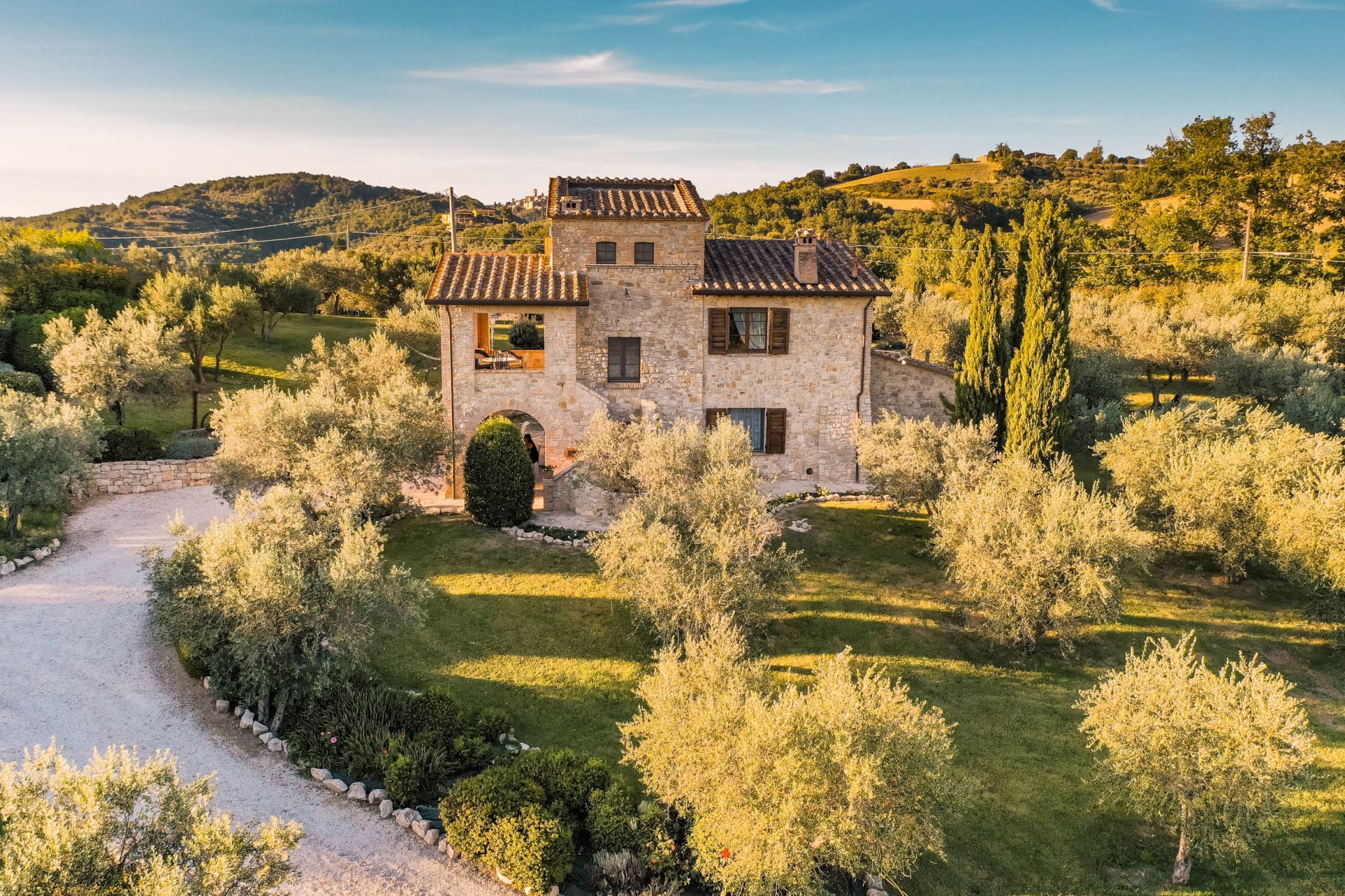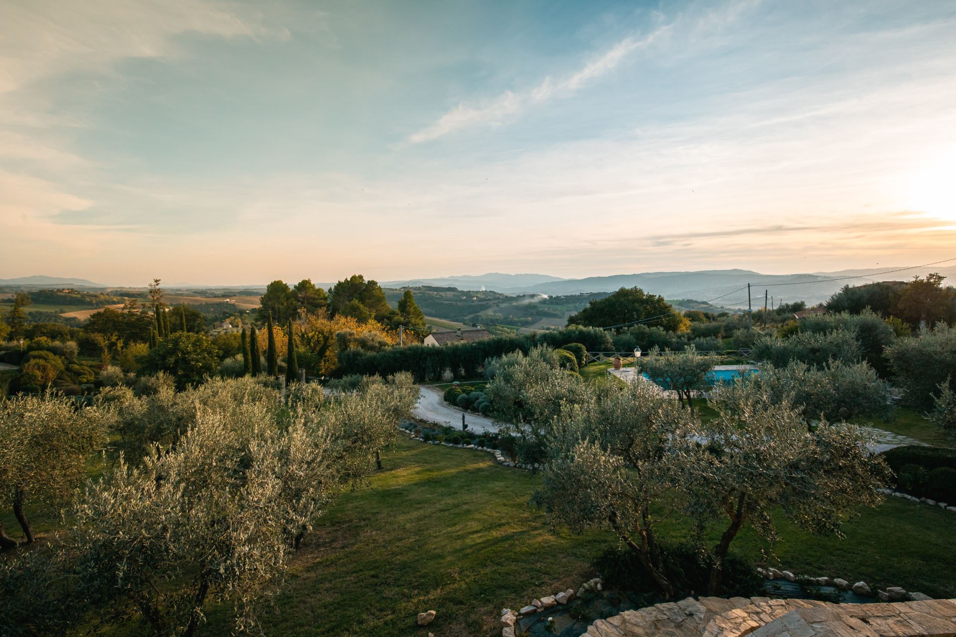 Villa Rose ligger højt med udsigt over det omgivende umbriske landskab med oliventræer, skov, marker og små landsbyer på bakketoppene. Huset er detaljeret renoveret og istandsat med stor respekt for den lokale tradition og indretningen er meget gennemført i en klassisk italiensk stil med alle moderne bekvemmeligheder såsom aircondition, internet og opvaskemaskine.